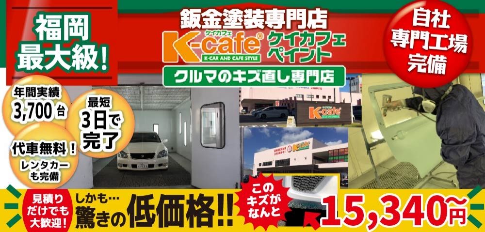 北九州市(八幡西区・小倉南区・八幡東区・若松区・小倉北区・戸畑区・門司区)・行橋市・中間市・遠賀郡水巻町エリアのお客様が安心できるキズ直し、鈑金・修理を心がけております。