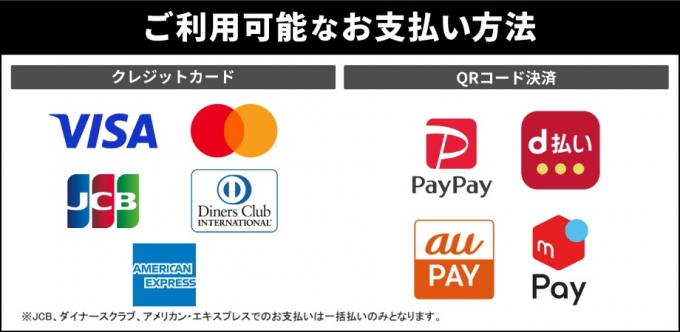 ※JCB、ダイナースクラブ、アメリカン・エキスプレスでのお支払いは一括払いのみとなります。